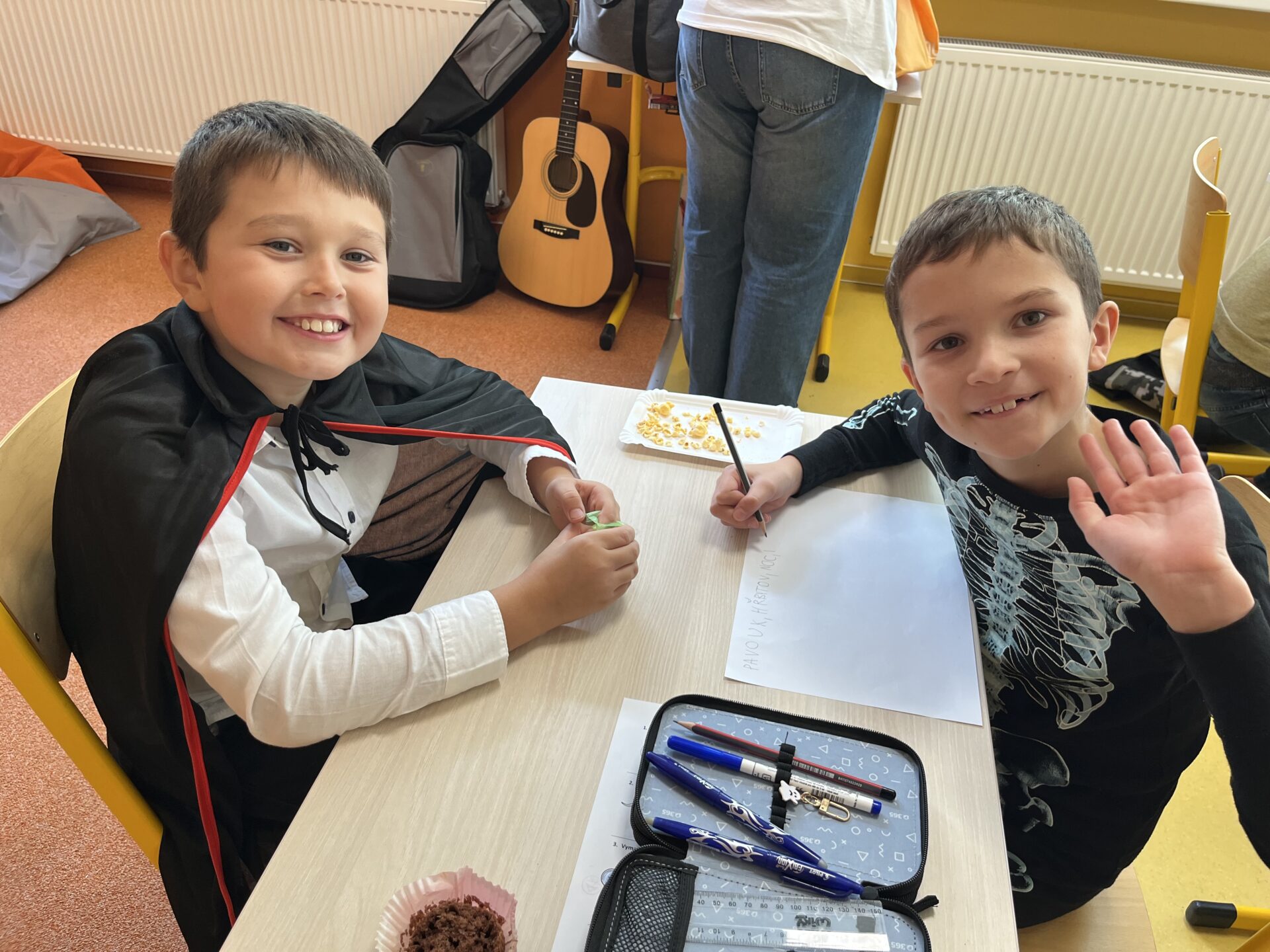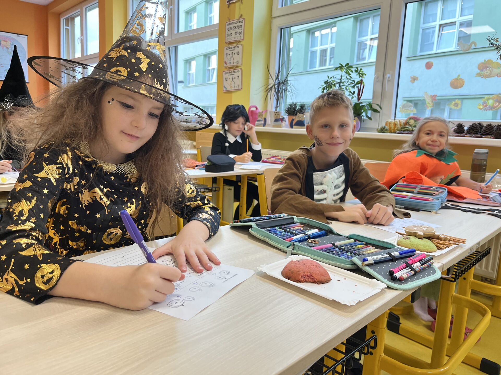 V pátek se třída 3.C proměnila v rej strašidelných, kouzelných i veselých masek. Děti přišly do školy v originálních kostýmech, které si samy nebo s pomocí rodičů připravily a hned od rána se pustily do plnění nejrůznějších halloweenských úkolů. Zlatým hřebem dne byla volba Miss a Mr. Halloween, při které děti předvedly své kostýmy a porota složená z jejich spolužáků rozhodla o vítězích. Po vyhlášení si všichni pochutnali na sladkých i slaných dobrotách, které dětem připravily maminky. Celá akce se vydařila, děti si den plný zábavy užily a už se těší na další společné zážitky.